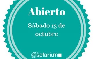 Sofarium permanecerá abierto el sábado 13 de octubre en su horario habitual. Ven a visitarnos y te informaremos de todas nuestras novedades. ¡Te esperamos!.